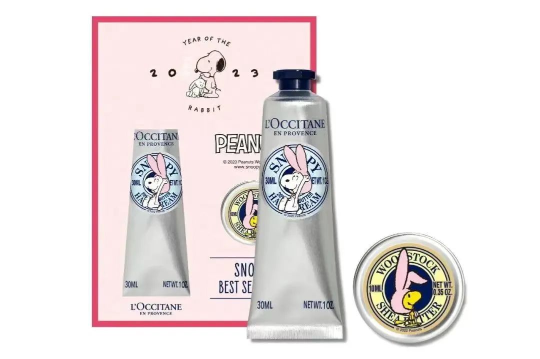 另外,歐萊雅則是跟曾與中國(guó)航天、NBA等品牌合作過(guò)的航天育種潮玩品牌ROBBI聯(lián)名,將航天元素與美妝產(chǎn)品進(jìn)行結(jié)合。歐舒丹更為別出心裁,與史努比進(jìn)行聯(lián)名,設(shè)計(jì)出新的兔子史努比形象。