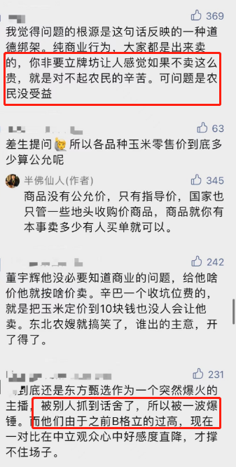 “6元玉米”成為東方甄選開播以來最大的輿論事件,一些網(wǎng)友開始質(zhì)疑東方甄選打著助農(nóng)旗號,實際上收益都到了自己口袋,根本無法幫助到農(nóng)民。