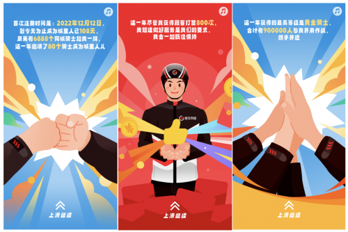 “迄今為止,我已成為城里人300天,曾到訪過6座城市,合計(jì)配送了9000KM,相當(dāng)于環(huán)繞故宮跑了80圈,這一年點(diǎn)亮了正義大使5星等榮譽(yù)勛章,獲得過最高的等級是黃金騎士,合計(jì)有30000人和我一起并肩作戰(zhàn)!边@是騎士小賈的年度個(gè)人專屬報(bào)告。