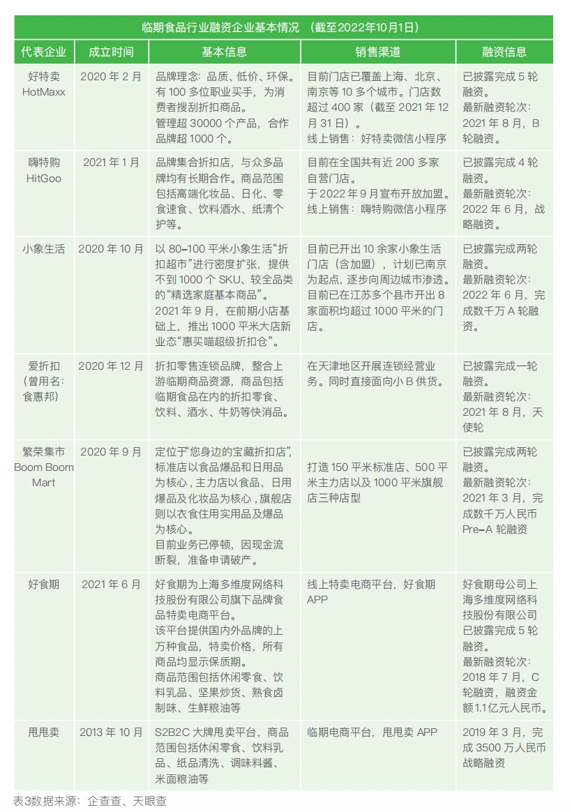 第一類,以銷售臨期食品為主的折扣連鎖店,即臨期食品折扣店,例如好特賣HotMaxx、嗨特購HitGoo、小象生活;