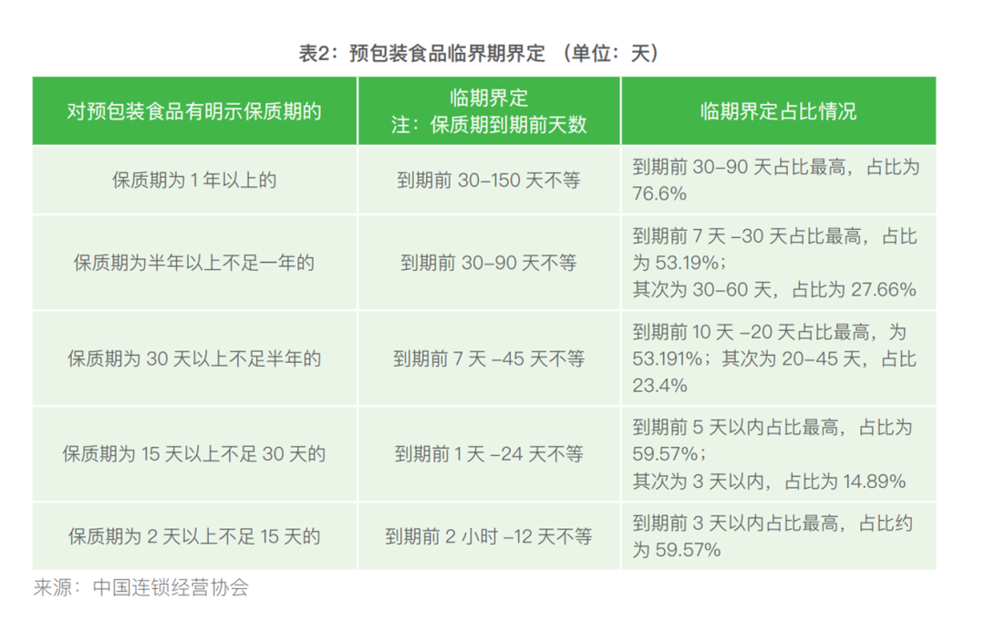 值得注意的是,幾乎所有超市企業(yè)都對預(yù)包裝食品有相關(guān)臨期管理措施,但對于臨期時間的界定差異較大,規(guī)則不統(tǒng)一。