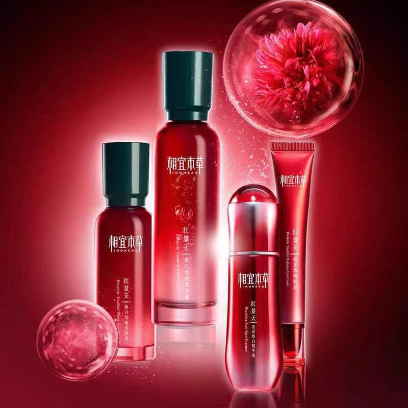 紅景天煥亮精華液(俗稱相宜本草小紅瓶)應運而生。2017年,英敏特的數(shù)據(jù)顯示,精華液相關產品連續(xù)三年成為護膚品中增長最快的子品類。所以,2017年下半年,相宜本草確定了以“紅景天”中草藥成分營銷,半年賣出了9萬只,可以算是國貨美妝第一批“成分黨”。