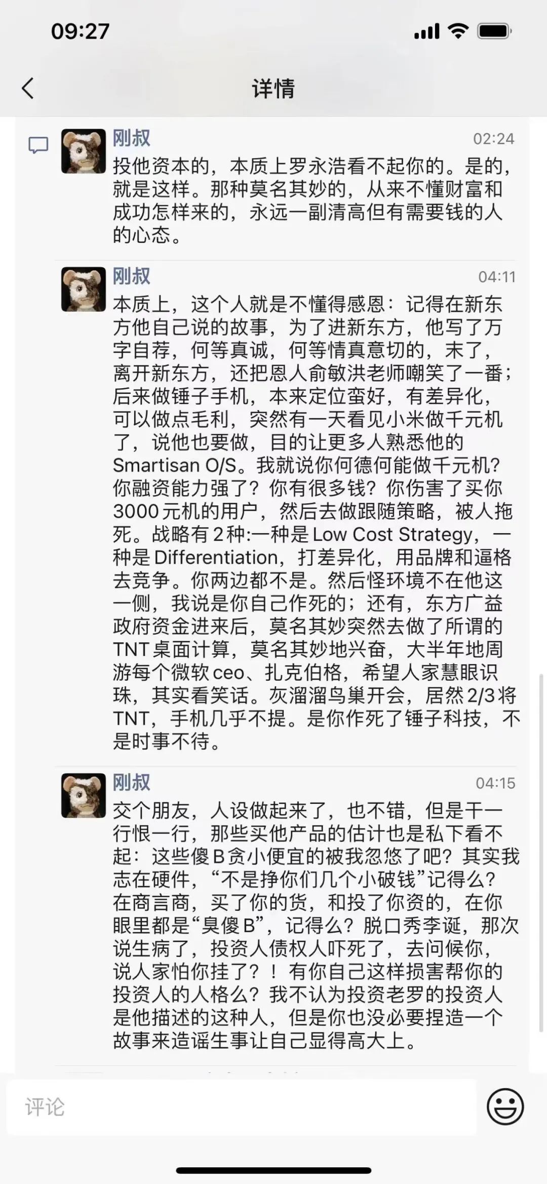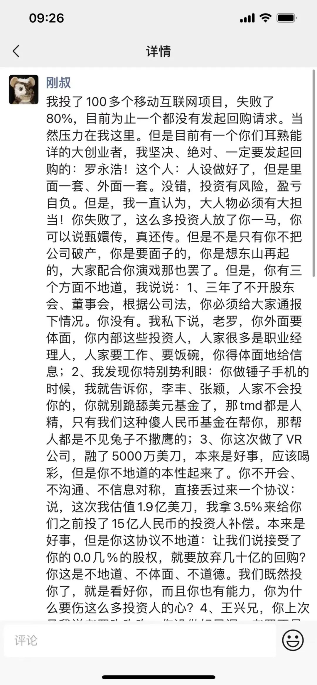 投資人炮轟羅永浩表里不一,羅永浩:可以理解但不認(rèn)同