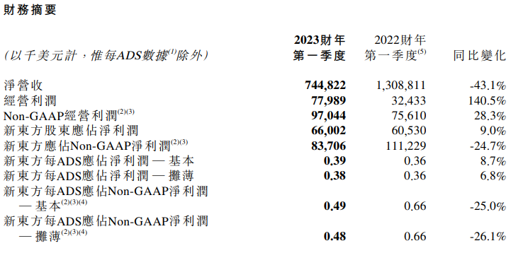 (圖源:新東方2023財(cái)年Q1財(cái)報(bào))