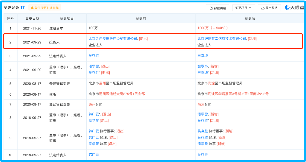 北京福旺工商信息變更記錄(圖片來源:天眼查)