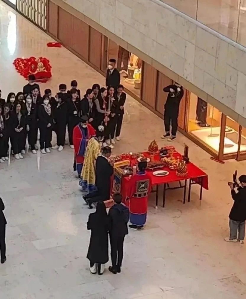1月8日,有消費(fèi)者在某社交平臺(tái)發(fā)文透露稱,南京德基廣場(chǎng)一樓愛(ài)馬仕在重新裝修后再次開業(yè),請(qǐng)來(lái)幾名道士“做法”,從照片來(lái)看,貢桌前有一名穿黑色西裝的男子跪下祈禱,當(dāng)時(shí)還吸引不少路人圍觀。