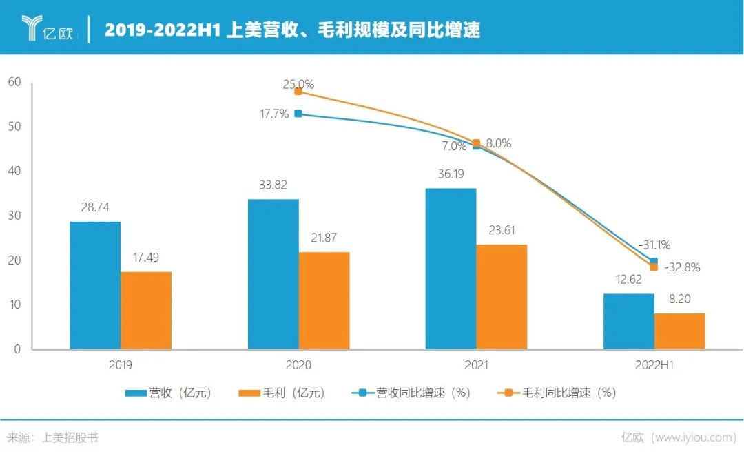 根據(jù)招股書(shū),2019-2021年以及2022年上半年,上美集團(tuán)營(yíng)收分別為28.74億元、33.82億元、36.19億元以及12.62億元;毛利分別為17.49億元、21.87億元、23.61億元以及8.20億元;除稅前利潤(rùn)分別為5940萬(wàn)元、2.03億元、3.39億元及7840萬(wàn)元。