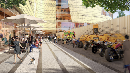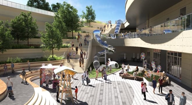 此外,項(xiàng)目通過(guò)極具視覺(jué)沖擊力的“♪”音符形態(tài)建筑,塑造城市記憶IP地標(biāo);8000m2穹頂天幕+5000 m2寶藏城市露臺(tái),勾連京西首個(gè)開(kāi)放式“云中花園”;錯(cuò)落有致的雙下沉廣場(chǎng),北側(cè)營(yíng)造面向家庭客群的自然游憩“綠野親子樂(lè)園”,南側(cè)營(yíng)造具有城市微風(fēng)峽谷沉浸式氛圍的“京西騎行驛站”,成為京城騎行愛(ài)好者和年輕客群的運(yùn)動(dòng)社交圣地;后續(xù)依托大悅城商業(yè)重度運(yùn)營(yíng)能力,活化多元目的地組合,形成“京西社交紅場(chǎng)”。