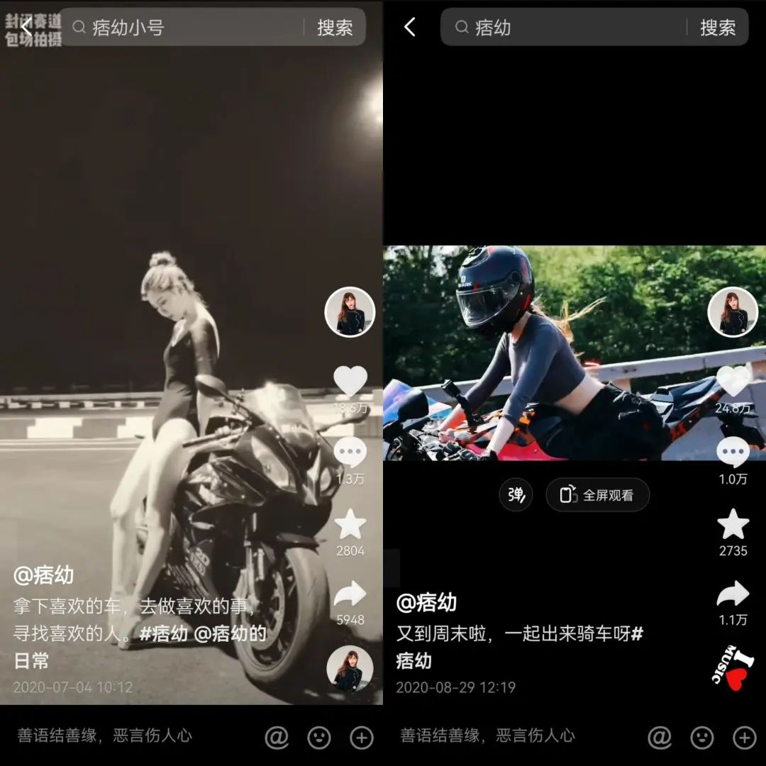 一輛粉黑配色的酷炫機車,配上一位身材火辣長相可愛的女性,“車+美女”反差感搭配,讓痞幼迅速在互聯(lián)網上爆紅。