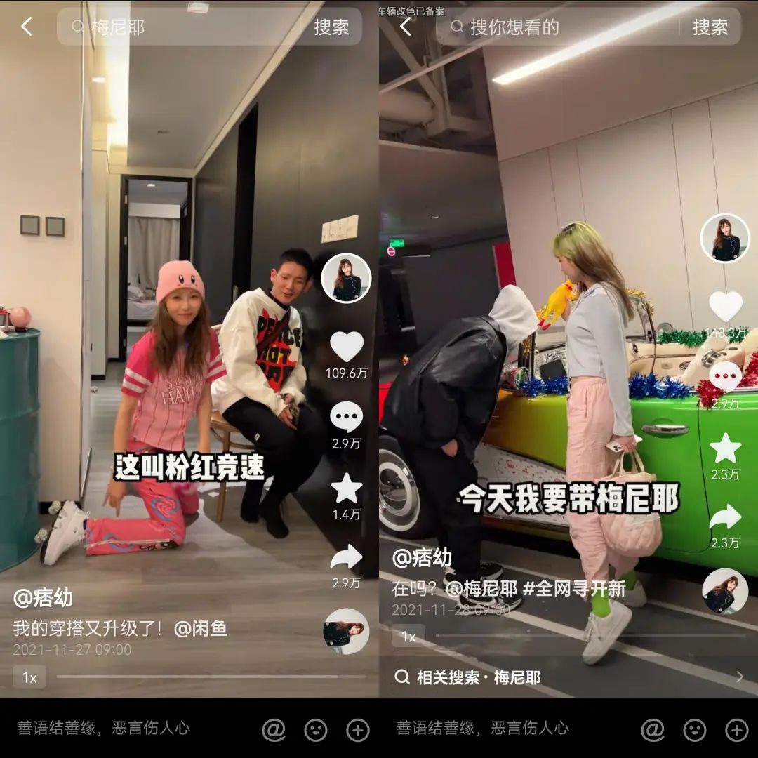 這一時期的痞幼也繼續(xù)和其他博主進行內容共創(chuàng),其中最為出圈的就是以“組CP”形式出現(xiàn)的梅尼耶。