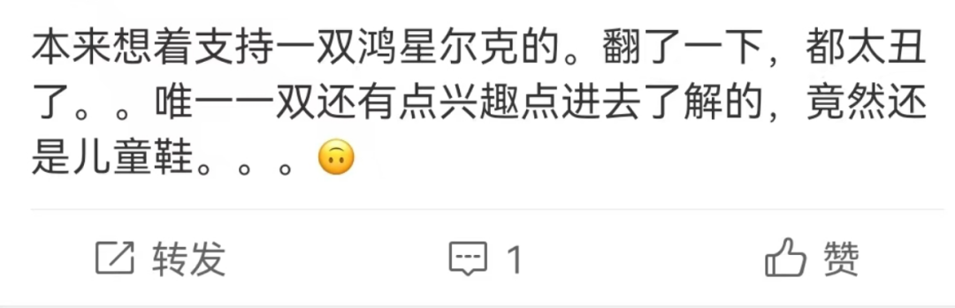 以鴻星爾克為例,從價格上來看,鴻星爾克運動鞋的價格多為百元左右,二三百的鞋子在鴻星爾克中已經屬于較高的價格了,但設計是其硬傷。即便是在“野性消費”時期,也有不少網友吐槽“設計太丑”;同樣,蜂花也曾因為“廉價”的包裝引發(fā)吐槽。