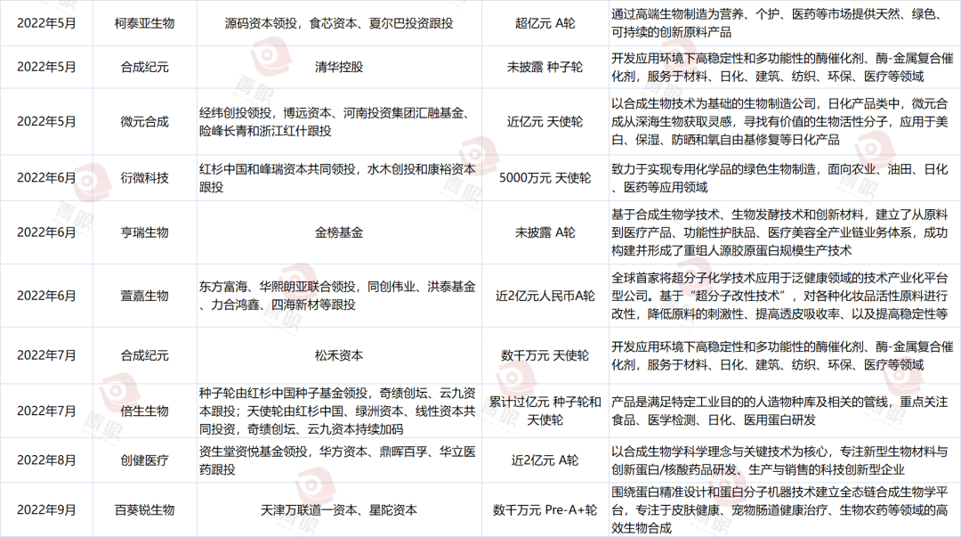 據(jù)了解,目前比較成熟的合成生物應(yīng)用包括L-丙氨酸等化工產(chǎn)品、人造肉、護(hù)膚品原料角鯊?fù),及部分藥物中間體等;诖,在募資不順、投資放緩的2022年,合成生物獨(dú)得資本青睞,站上投融資風(fēng)口。