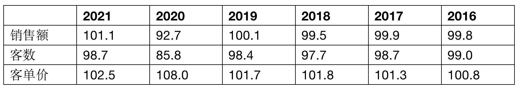 羅森現(xiàn)有店鋪銷售額、客數(shù)、客單價(jià)與上年之比(%)