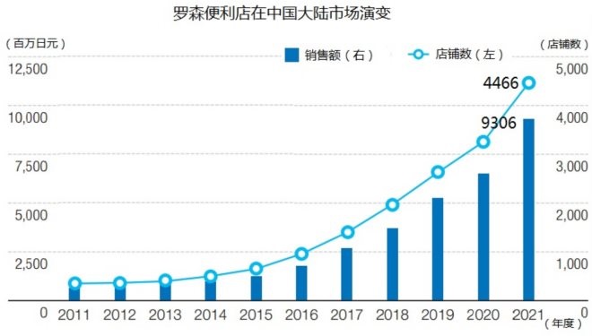 羅森對中國大陸市場青睞有加。羅森社長竹增貞信對企業(yè)的海外事業(yè)表示樂觀,店鋪總數(shù)量為4862個(gè)店鋪,絕大部分集中在中國大陸。2000年因?yàn)樽饨、社?huì)公關(guān)交易難題一度徘徊不前。進(jìn)入2010年以后,總部調(diào)整合作開店策略,尋找與當(dāng)?shù)赝瑯I(yè)界合作機(jī)會(huì),借雞下蛋。