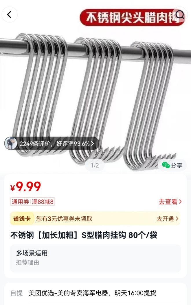 ▲年味漸濃,“臘肉掛鉤”成熱銷年貨 (圖源:美團(tuán)優(yōu)選頁(yè)面截圖)
