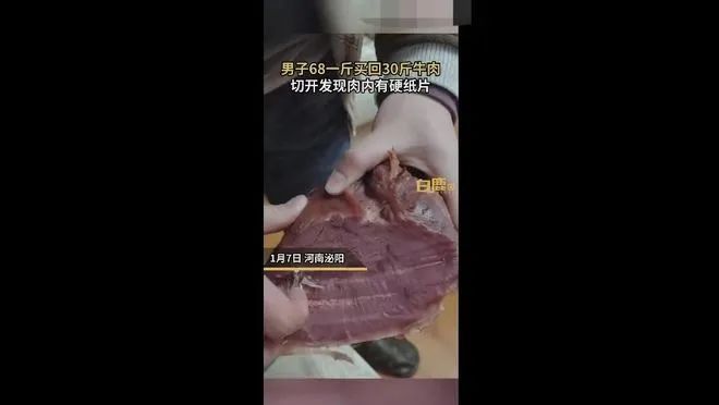 賣(mài)得多了,問(wèn)題也就來(lái)了,有顧客在牛肉中吃出硬紙片,質(zhì)疑牛肉是合成肉;也有人買(mǎi)回去生牛肉自己煮,發(fā)現(xiàn)縮水嚴(yán)重,投訴牛肉注水造假。