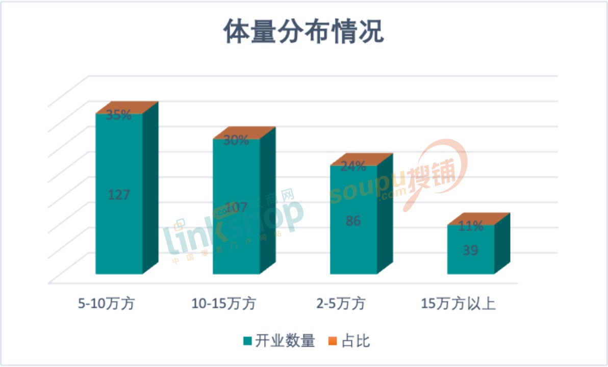 體量上看,與行業(yè)整體趨勢一致,符合當(dāng)下投運購物中心的理想規(guī)模,同時在一些經(jīng)濟發(fā)達、商業(yè)起步早和成熟的城市,城市市級商業(yè)發(fā)展相對完善,開始逐步朝區(qū)域、社區(qū)型購物中心發(fā)展。