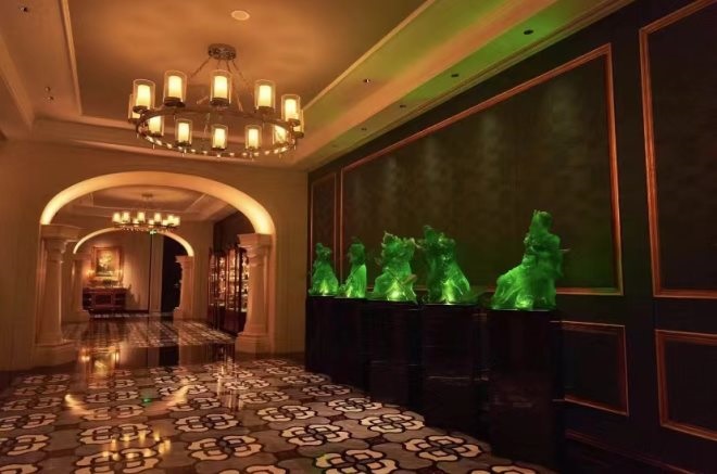 西南首店的裝修可以用“富麗堂皇、低調(diào)典雅”八個字來概括。走廊充斥著吊燈泛出的暖黃色燈光,與旁邊的一排墨綠色擺件相襯,典雅奢華;用餐區(qū)桌椅采用的是紅色,桌布則挑選的是白色,地板磚采用的是深咖色,三種顏色相得益彰;除了功能分區(qū),一些小角落也可以看出布置的用心程度。