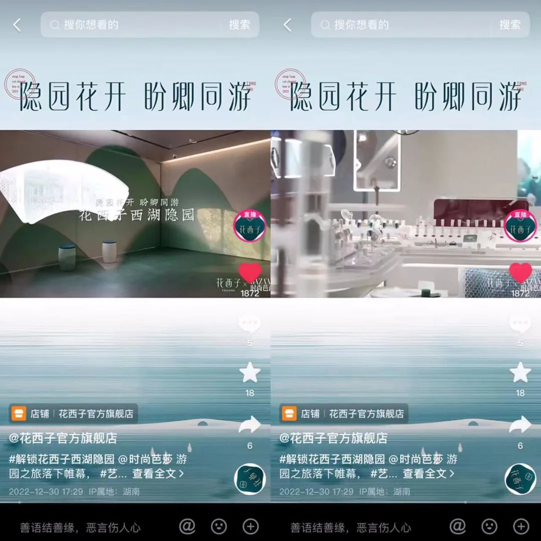 2022年12月,國潮彩妝品牌花西子全球首家旗艦店開業(yè),品牌牽手抖音電商打造“西湖隱園·玉兔降臨”主題活動,同步推出玉兔妝貨品套組,邀請明星達人矩陣挑戰(zhàn)玉兔妝容,引發(fā)平臺全民熱議與參與,迅速激活品牌公眾感知。
