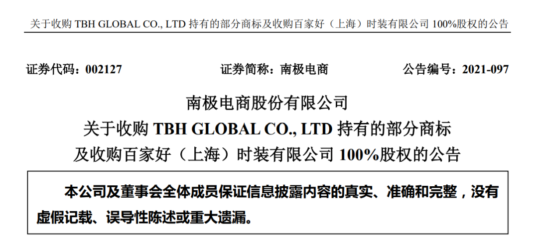 自從2020年公司業(yè)績和股價雙雙變臉之后,南極電商就做了不少應對的嘗試,包括2021年連續(xù)兩次股票回購,又以5億元收購了處在虧損狀態(tài)的韓國女裝品牌百家好。
