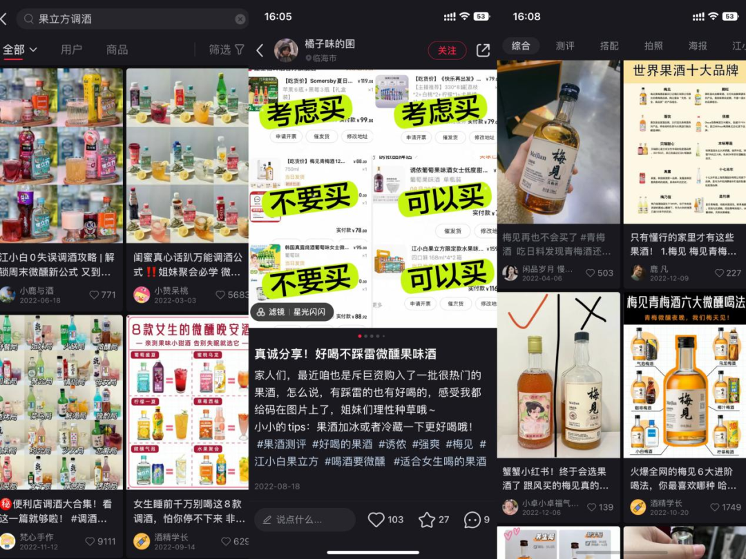 在消費(fèi)場景打造上,年輕女性閨蜜聚會,果立方配西瓜雪碧是基礎(chǔ);酒館和日料店里,梅見搭配暖黃的燈光,調(diào)低曝光,制造年輕人追求的氛圍感。
