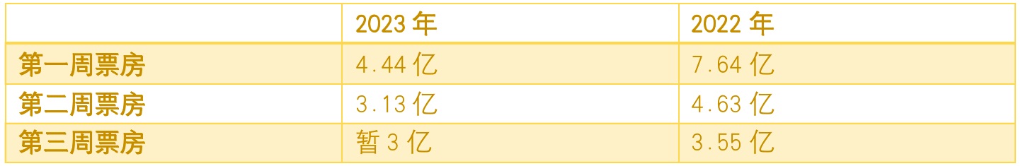2023年元旦檔大幅落后于2022年,到第二周跌幅縮小,第三周將迎來首次大幅反超,第四周有春節(jié)檔加持,帶來的檔期票房前移,1月份整體會創(chuàng)出新高。