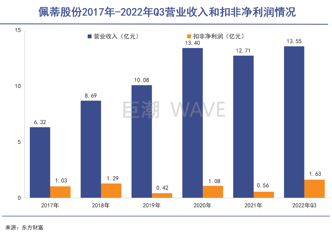 A股中的“寵物經(jīng)濟(jì)第一股”——佩蒂股份是我國(guó)較早專業(yè)從事寵物食品產(chǎn)業(yè)的企業(yè)之一。2022年前三季度,其營(yíng)收增長(zhǎng)近50%,利潤(rùn)增幅超100%。但業(yè)績(jī)對(duì)股價(jià)并無幫助,2022年下跌14.3%。