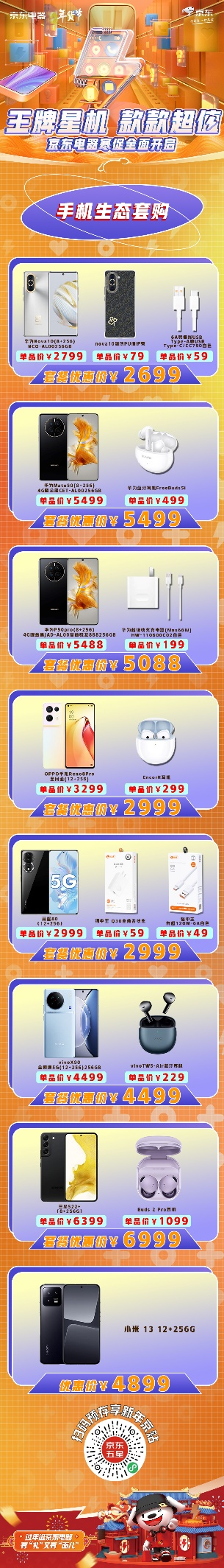 手機(jī)生態(tài)套購方面,華為Nova10(8+256)NCO-AL00256GB單品價2799元,搭配nova10超薄PU保護(hù)殼79元以及6A數(shù)據(jù)線,套餐優(yōu)惠價2699元;華為Mate50(8+256)4G曜金黑單品價5499元,搭配單品價499元的華為藍(lán)牙耳機(jī)FreeBuds5i,套餐價5499元;單品價3299元的OPPO Reno8Pro全網(wǎng)通(12+256)搭配單品價299元的Encor耳機(jī),套餐活動價2999元……春節(jié)期間,京東電器、京東五星電器線下門店還將會陸續(xù)開放更多年貨節(jié)以及寒假大促的優(yōu)惠福利,春節(jié)期間服務(wù)不打烊,并保證7天無理由退貨、30天價保、30天包退、180天包換。來京東五星電器一鍵煥新,置辦實(shí)用新年貨吧!