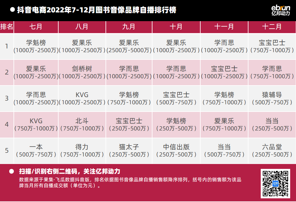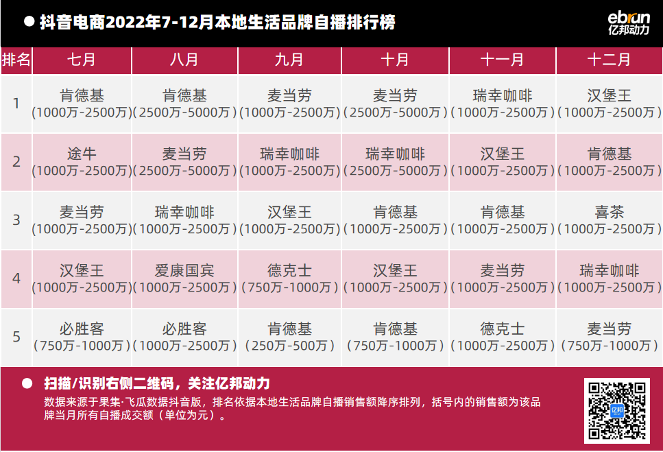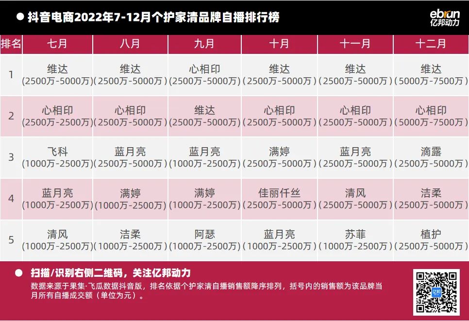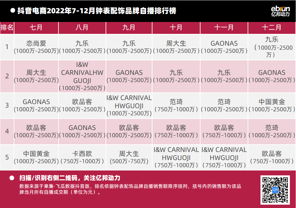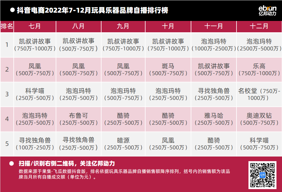 億邦動力根據(jù)“飛瓜數(shù)據(jù)(果集·飛瓜數(shù)據(jù)抖音版)”提供的數(shù)據(jù),盤點2022年7月-12月抖音自播總榜及20個垂直類目的榜單情況(按抖音銷售額進行排名)發(fā)現(xiàn):