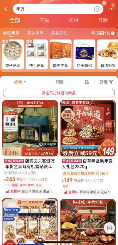 年貨市場(chǎng)競(jìng)爭(zhēng)也越來越激烈了。三只松鼠、百草味、良品鋪?zhàn)拥刃孪M(fèi)品牌近些年“登堂入室”,成為年輕人過節(jié)送禮的主要選擇。徐福記、旺旺、王老吉等老品牌也不得不重視數(shù)字化營(yíng)銷,努力契合國(guó)潮風(fēng),在線上、線下各個(gè)渠道花式整活,只為博得消費(fèi)者已經(jīng)稀碎的注意力。