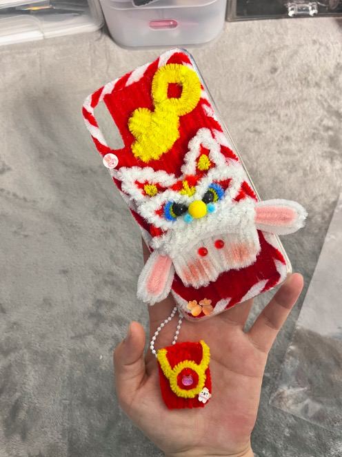 璐璐做的扭扭棒醒獅手機(jī)殼和掛件 / 受訪者供圖
