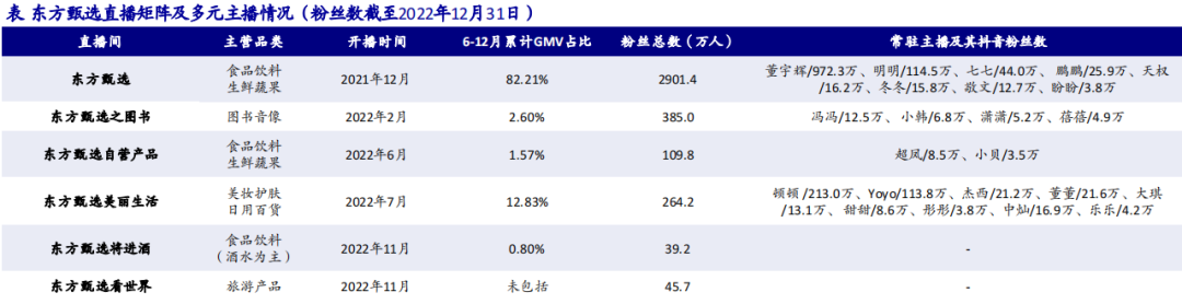 2022年12月28日,推動(dòng)新東方一路走高的東方甄選,曬出了直播帶貨一年的成績單:賬號從1個(gè)增加到6個(gè),粉絲總量突破3600萬,推出自營產(chǎn)品52款,總銷量1825萬單。而根據(jù)招商證券估算,東方甄選2023財(cái)年GMV將達(dá)90億元。