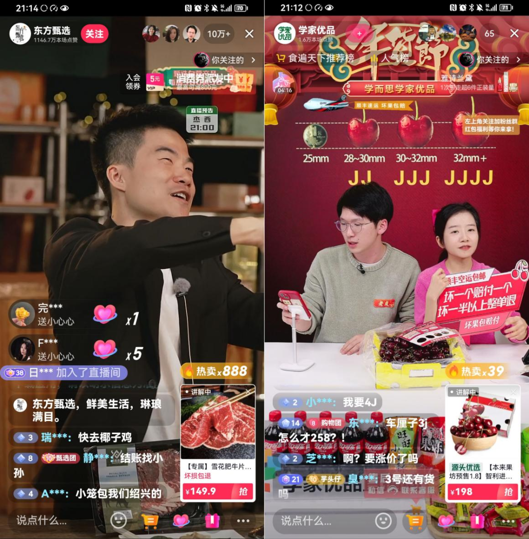 左:東方甄選直播間,右:學(xué)家優(yōu)品直播間