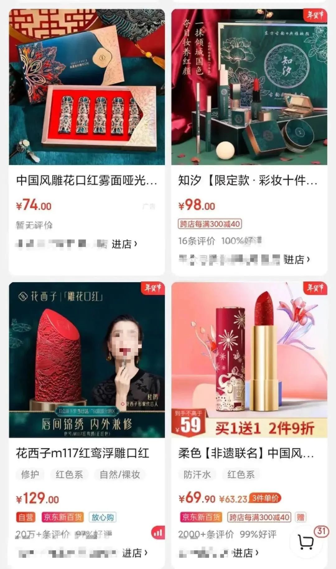 圖/某電商平臺“中國風口紅”搜索結果 來源/燃次元截圖