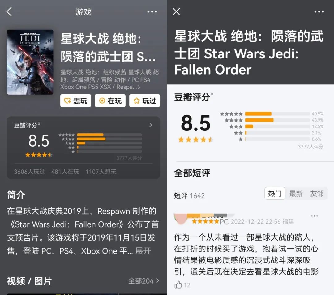 《星球大戰(zhàn)》幾部續(xù)作口碑比不上前作,但豐富的周邊衍生品吸引了越來越多的新人“入坑”,在社交平臺上,就有不少《星球大戰(zhàn)》游戲玩家表示沒有看過相關的電影,是通過游戲了解到這個IP“入坑”的,進而成為了忠實粉絲。