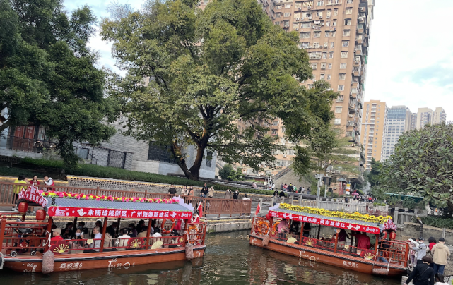 在廣州,荔枝灣游船排隊(duì)兩百多米