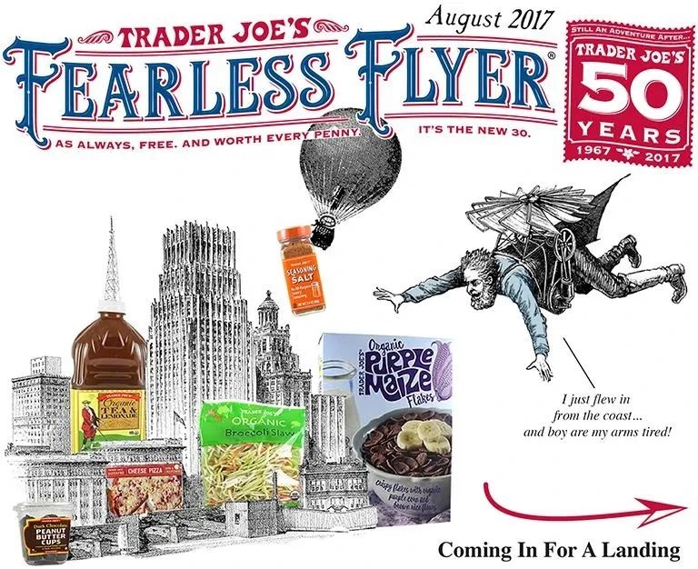 此外,Trader Joe's還使用傳統(tǒng)的傳單模式“Fearless Flyer”來提供產(chǎn)品資訊,推薦食譜、美食指南,甚至是門店即將舉行的活動和比賽。顧客可以提供住址,來免費(fèi)訂閱這樣一份類似漫畫報(bào)的傳單。