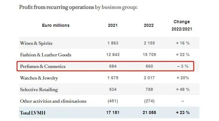 短期看,如Jean Jacques Guiony所言,這是“一個代價高昂的決定”,會降低盈利能力。數(shù)據(jù)顯示,在這兩年限制代購業(yè)務背景下,2022年LVMH集團香水和化妝品銷售收入為567億元人民幣,有機增長10%,但利潤出現(xiàn)3%的下滑,減少了約1.76億元。整體上,2022年LVMH集團銷售收入約合人民幣5817億元,經(jīng)常性營業(yè)利潤為1549億元,均增長23%。