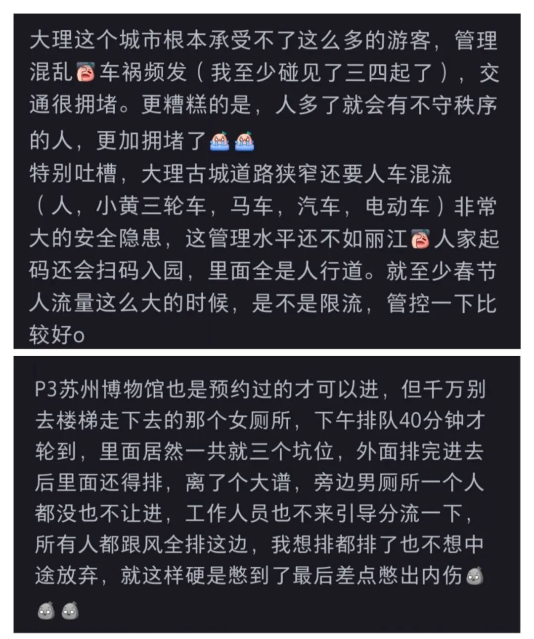 小紅書上網(wǎng)友對于大理交通、蘇州博物館的吐槽