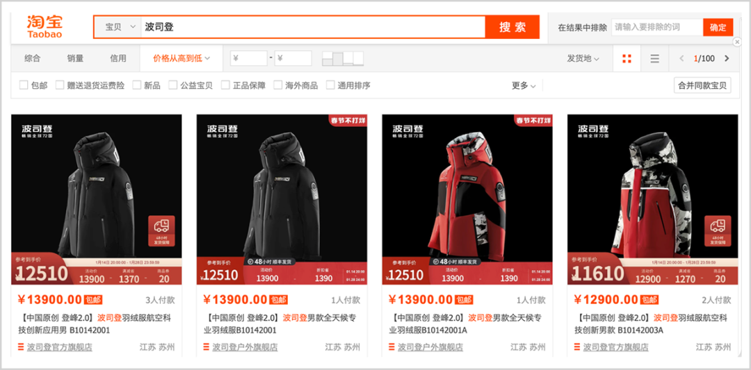 淘寶天貓顯示,推出“登峰2.0”之前,波司登產(chǎn)品最高價格不到7000元,其試圖用一款頗有爭議的萬元級產(chǎn)品一舉躋身世界級陣營,步子似乎邁得有點大。