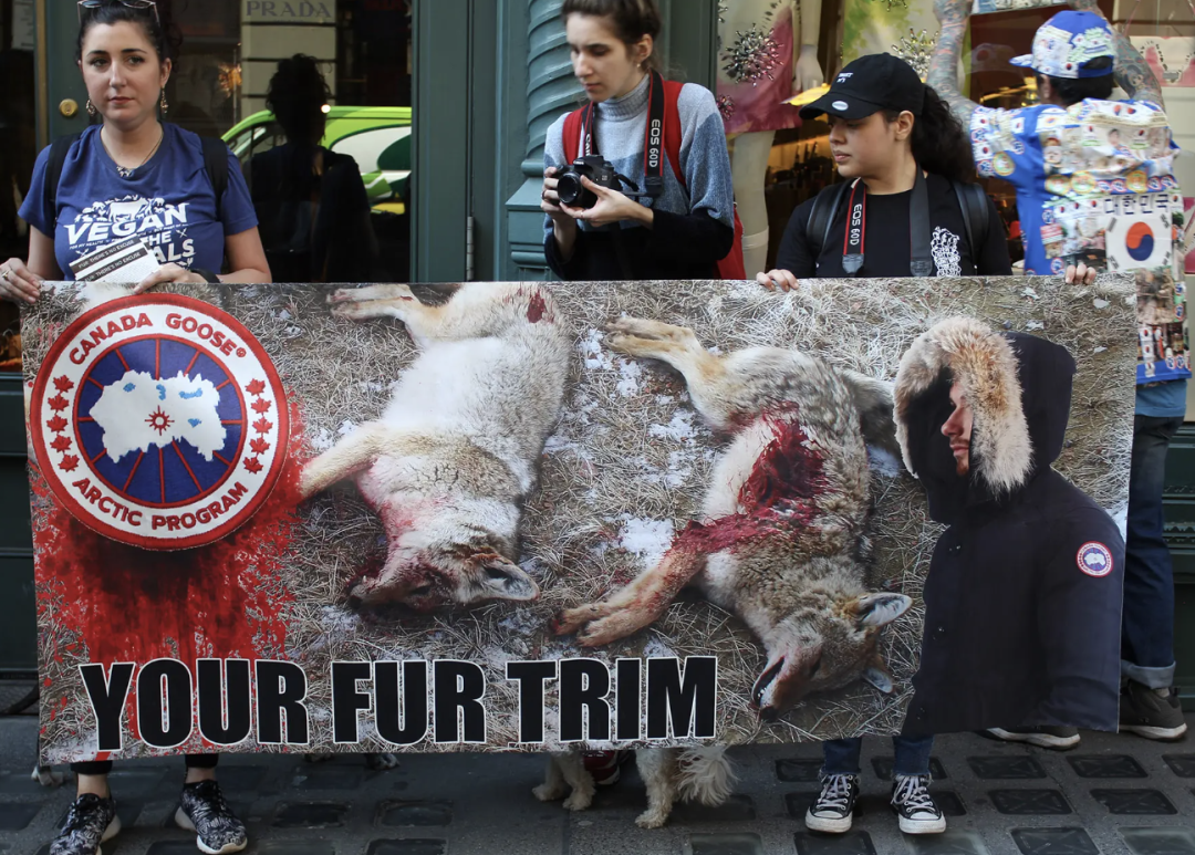 在無數(shù)次目睹發(fā)生在門店外和股東大會上的公開抗議后,2020年4月加拿大鵝讓步,宣布將使用回收二手的毛皮來裝飾大衣的帽子,不再使用剛殺死的郊狼的皮。