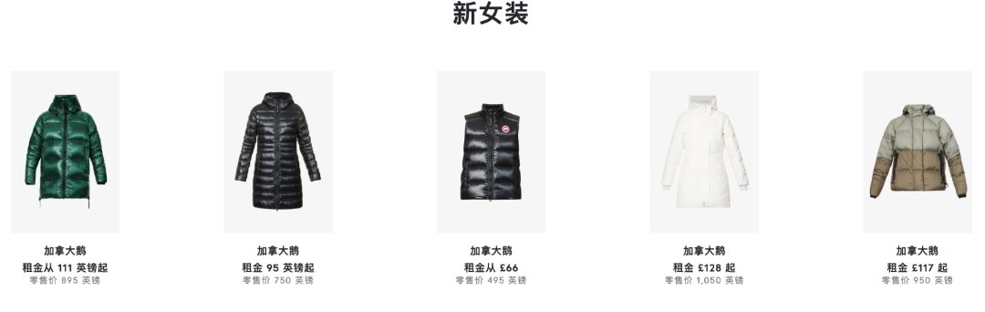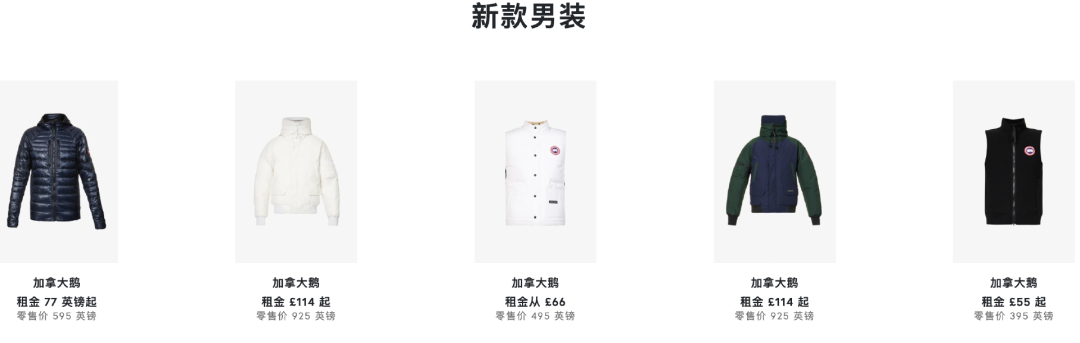 租賃時間可選擇4天、8天、10天和20天。目前最便宜的選擇,是花55英鎊(約合460元人民幣)租4天背心穿。Selfridges 眼中的目標用戶是居住在英國的消費者,這里最寒冷極端的天氣持續(xù)時間短,就滿足保暖需求而言,租加拿大鵝顯得比買要劃算。