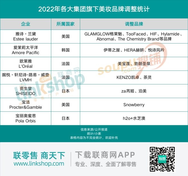據(jù)《聯(lián)商網(wǎng)》不完全統(tǒng)計,2022年至少有7家美妝領(lǐng)域大型企業(yè)對旗下品牌進行了關(guān);蛞(guī)模收縮的調(diào)整,TooFaced、HERA赫妍、勃朗圣泉、茶靈等超過17個品牌接連淪為“棄子”。