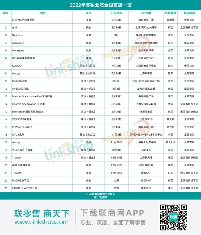一眾美妝品牌的消失或收縮令人遺憾,但市場上傳來的并非都是壞消息。據(jù)《聯(lián)商網(wǎng)》不完全統(tǒng)計,2022年全年國內(nèi)共引進23家美妝全國首店,其中涉及的14個外資品牌為首次進入中國,與退出中國市場的海外品牌數(shù)量保持相對平衡。