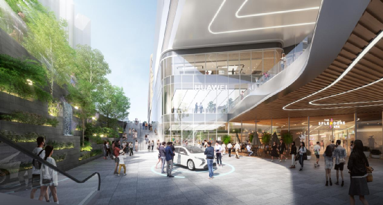 結合TOD的設計理念,武漢金茂覽秀城規(guī)劃2個下沉廣場,通過地下一層的商業(yè)與芳草路站連通。