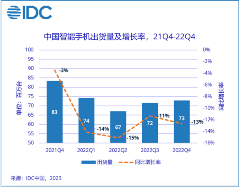 1、IDC:2022年,中國智能手機市場出貨量創(chuàng)有史以來最大降幅