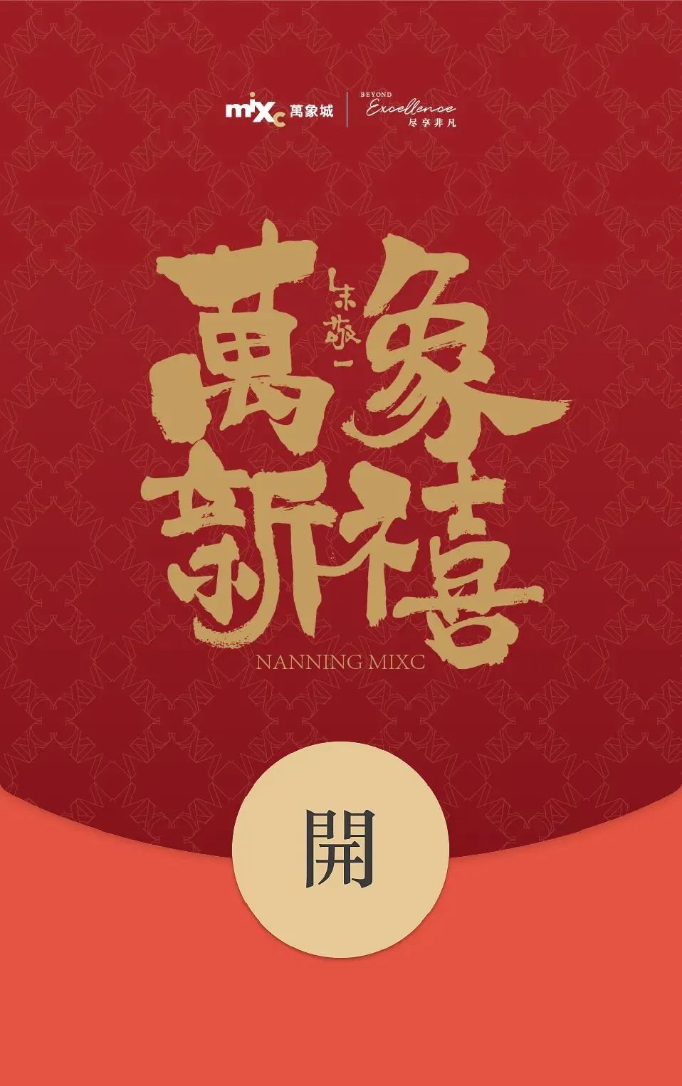 南寧萬(wàn)象城結(jié)合線下“囍帖街”活動(dòng),與朱敬一聯(lián)名創(chuàng)作“萬(wàn)象新禧”新春紅包封面。