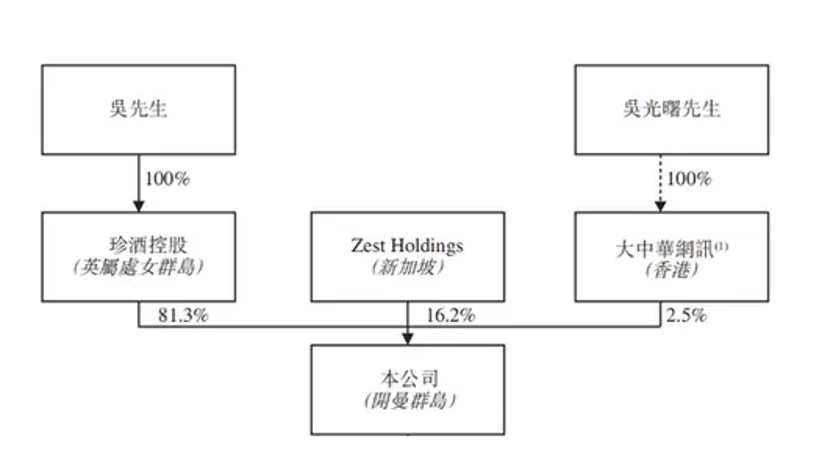 2021年,吳向東完成珍酒李渡上市結(jié)構(gòu)的搭建。IPO前,珍酒控股持有珍酒李渡81.3%股份,知名私募投資公司KKR控制的Zest Holdings持股16.2%,大中華網(wǎng)訊持股2.5%。