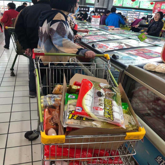 “每年元宵節(jié)前后,超市都會(huì)推出速凍食品5折活動(dòng)。我已經(jīng)連著五、六年過來大“囤”貨了。過完年我就開始慢慢清空冰箱騰出地方,等著華潤(rùn)萬家活動(dòng)開始,孩子愛吃的兒童牛排是必須大量買的,還有全家平常早餐吃的水餃、刀切、小米糕、紅糖饅頭這些早餐速凍品,當(dāng)然我也囤了元宵節(jié)必備的芝麻湯圓,算算這樣一車便宜商品比平常便宜將近300塊呢,真當(dāng)實(shí)惠哦!”忙著往購(gòu)物車塞商品的鄭女士喜滋滋向記者介紹。