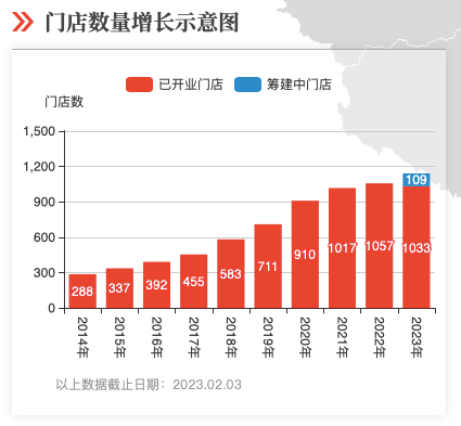 截至今年1月29日,算上新開門店,永輝超市在營門店1033家,較2019年時的高點1440家減少了400多家。
